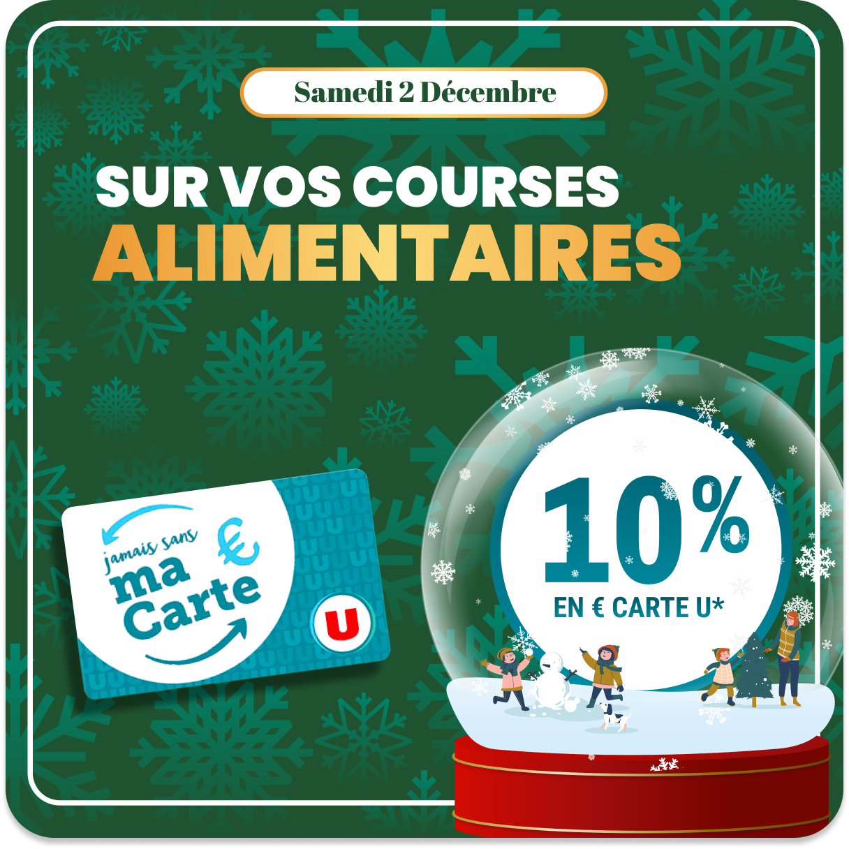 *Voir conditions en magasin. Voir liste des magasins participants à cette opération. Toutes les opérations sont réservées aux porteurs de la carte U. **Bon d’achat valable du 05/12 au 12/12
